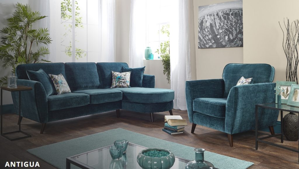 The Antigua collection is the optima of elegance in a rich velvet in jewel like colours. A chaise allows you to lay back and lounge in comfort supported by classic, beautifully printed velvet scatter cushions in a botanical design from a bygone era. All supported on turned, tapered legs available in antique walnut or oak effect finish. Available in: 3 Seater, 2 Seater, Chaise Corner Unit, Chair and Banquette Footstool. Not on our shop floor display but is available to order. To find out more about the Antigua range, click on the link. https://www.lebus.co.uk/range/antigua