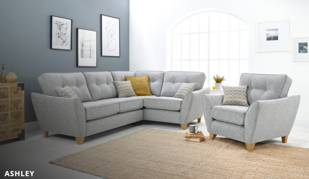 The Ashley is a smart modern range featuring a gently curving teardrop arm, stylish accent cushions finished with a smart button detail in the back cushions. Simple wooden legs add a lovely contemporary touch. An added depth is featured within the Ashley range using warm accents which add a subtle but punchy pop of colour. Available in: 3 Seater, 2 Seater, 2 Seater Sofa-bed, Chaise Corner Unit, Armed Corner Unit, Chair and a matching range of Footstools and Accent pieces. Not on our shop floor display but is available to order. To find out more about the Ashley range, click on the link. https://www.lebus.co.uk/range/ashley