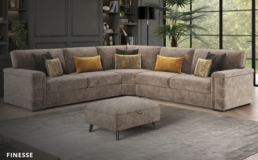 The Finesse range represents the perfect harmony of timeless elegance and modern comfort, serving as a sophisticated centrepiece for any contemporary home. Each piece is defined by its exquisite detailing, featuring distinctive gold piping elegantly traced along the arms and wrapped in our signature, ultra-soft dappled velvet fabric. To ensure the collection fits your unique vision, we offer customisable finishing touches including Gold, Silver, or matching self-piping options, allowing you to tailor the aesthetic to your specific interior style. Beyond its striking silhouette, the Finesse is meticulously engineered for ultimate relaxation, featuring generously padded seat and back cushions that provide superior support. This comfort is built upon a foundation of durability, with a sturdy internal frame and wide, plush armrests that make it the ideal choice for long evenings of lounging. Available in: 4 Seater, 3 Seater, 2 Seater, Love Chair, Chair, Corner Unit and Accent Chair and Storage Footstool. Not on our shop floor display but is available to order. To find out more about the Finesse range, click on the link. https://www.lebus.co.uk/range/finesse