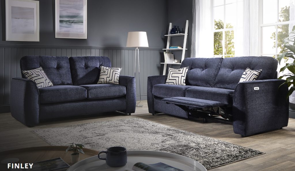 The Finley has been designed with flair, it’s contemporary shape has a touch of sophistication. The sofa features motorised extending footrests which can easily be controlled by the touch of the finger. This offers practicality as well as style, you can enjoy years of relaxation, while also charging your electronic devices in the handy USB port built into the arm control . The Finley is upholstered in a rich luxurious chenille, highlighted with elegant velvet scatter cushions. Available with or without electric footrests. Available in: Corner unit, 3 Seater, 2 Seater, Chair and Storage Footstool. Available to view in-store.To find out more about the Finley range, click on the link. https://www.lebus.co.uk/range/finley