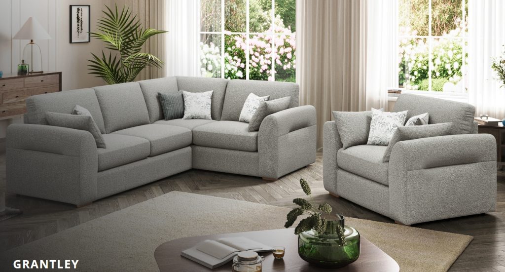 Experience the perfect blend of style and support with the Grantley sofa collection. The elegant, rolled armrests provide a soft, inviting touch, while pleated details on the sides add an extra layer of sophistication. The whole package is finished in a soft weave body fabric with contrasting patterned accent cushions. Designed to stand the test of time, this entire range makes a bold statement in any room. Choose from a variety of sizes, from a spacious corner sofa to a cosy loveseat, and finish your piece with either oak or mahogany effect feet. Available in: Corner unit, 4 Seater, 3 Seater, 2 Seater, Love Chair, Chair, Banquette Footstool and Storage Footstool. Available to view in-store.To find out more about the Grantley range, click on the link. https://www.lebus.co.uk/range/grantley