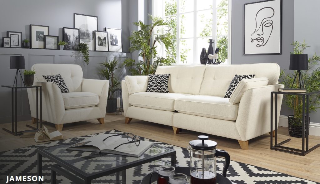 A wonderful contemporary design with soft clean lines in a luxurious fabric, it’s complimented by a range of beautiful textured accent cushions. This deep all enveloping model sits on turned tapering wooden legs which add to its sophistication. The mid-century design influence makes this a design classic. Available in: 4 Seater, 3 Seater, 2 Seater, Chair and Accent Footstool. Available to view in-store.To find out more about the Jameson range, click on the link. https://www.lebus.co.uk/range/jameson
