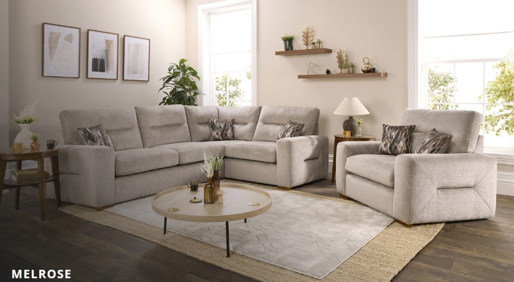 The Melrose collection with stylish corner chaise and several sizes of sofa and chair will grace any home, the stunning arm detail with its luxurious soft filling adds a beautiful design feature and exemplary level of comfort. The combination of superior foam and ultra tactile fabric will wrap you in a warm hug so sit back and relax in the knowledge you will be the envy of your family and friends. Available in: 4 seater, 3 Seater, 2 Seater, Chaise Corner Unit, Armed Corner Unit, Chair and a matching range of Footstools and Accent pieces. Not on our shop floor display but is available to order. To find out more about the Melrose range, click on the link. https://www.lebus.co.uk/range/melrose