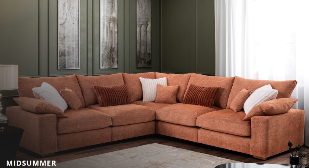 A contemporary modular design made for relaxation and flexibility, with it’s deep cosy feather topped seats and soft feather arm bolsters, and scatters offering plenty of support and space to stretch out in comfort. The Midsummer’s on-trend design offers you the chance to design your own seating areas to complement any style of living space. The beautiful soft chenille fabric is complemented by luxurious cosy cord scatters, offer texture and will make a striking statement in any style of home. Available in modular form to match up any size and combinations. Not on our shop floor display but is available to order. To find out more about the Midsummer range, click on the link. https://www.lebus.co.uk/range/midsummer