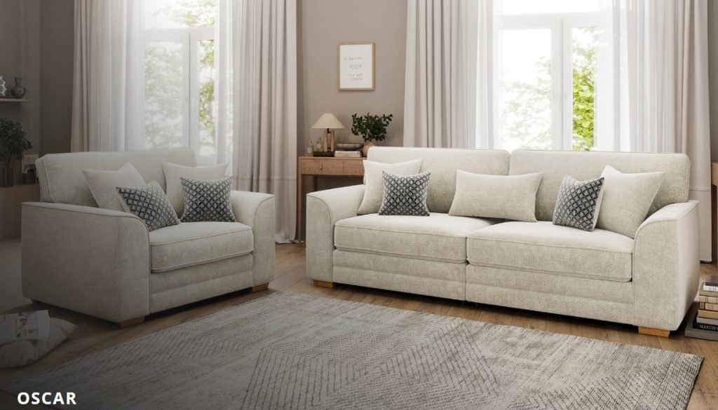 The Oscar collection will fit and grace any home, the bolster and scatter cushions have luxurious feather filling, and comes in a combination of plain and patterned fabrics, which adds a beautiful design feature and exemplary level of comfort. This beautiful timeless design will grace any style of home from traditional to contemporary. Available in: 4 seater, 3 Seater, 2 Seater, Armed Corner Unit, Love Chair, Chair and a matching Footstool. Not on our shop floor display but is available to order. To find out more about the Oscar range, click on the link. https://www.lebus.co.uk/range/oscar