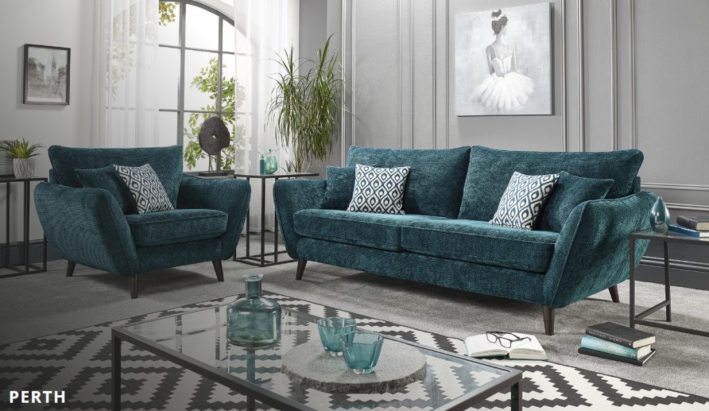 A modern, scandi inspired piece that oozes style. Simple but eye-catching angled arms featuring centred piping adds character to the model. This model comes in a comfortable high back with bold velvet accent cushions. Create a fresh and modern scandi space with the Perth. Using accents that add a pop of colour ad style. Available in: 4 seater, 3 Seater, 2 Seater, Chaise Corner Unit, Armed Corner Unit, Love Chair, Chair and a Footstool. Not on our shop floor display but is available to order. To find out more about the Perth range, click on the link. https://www.lebus.co.uk/range/perth