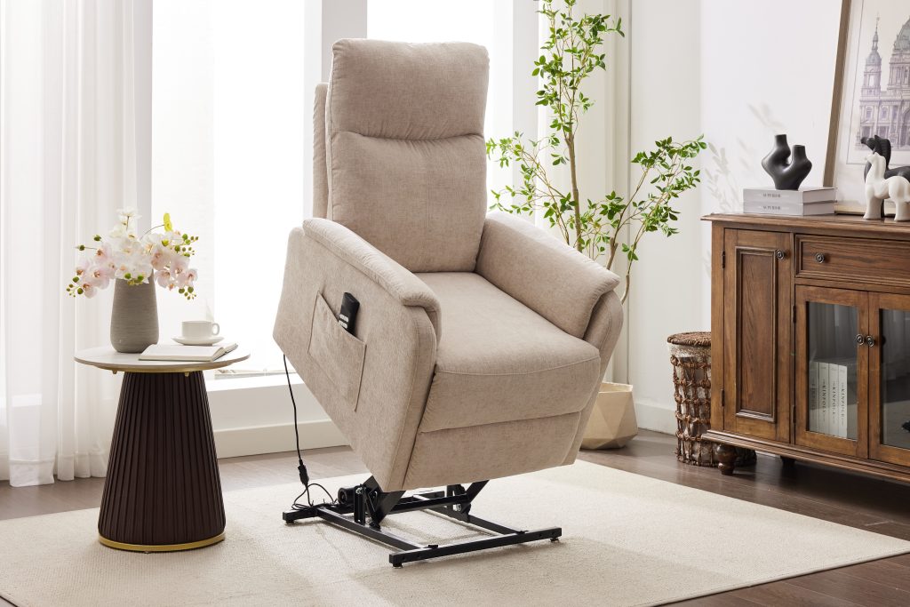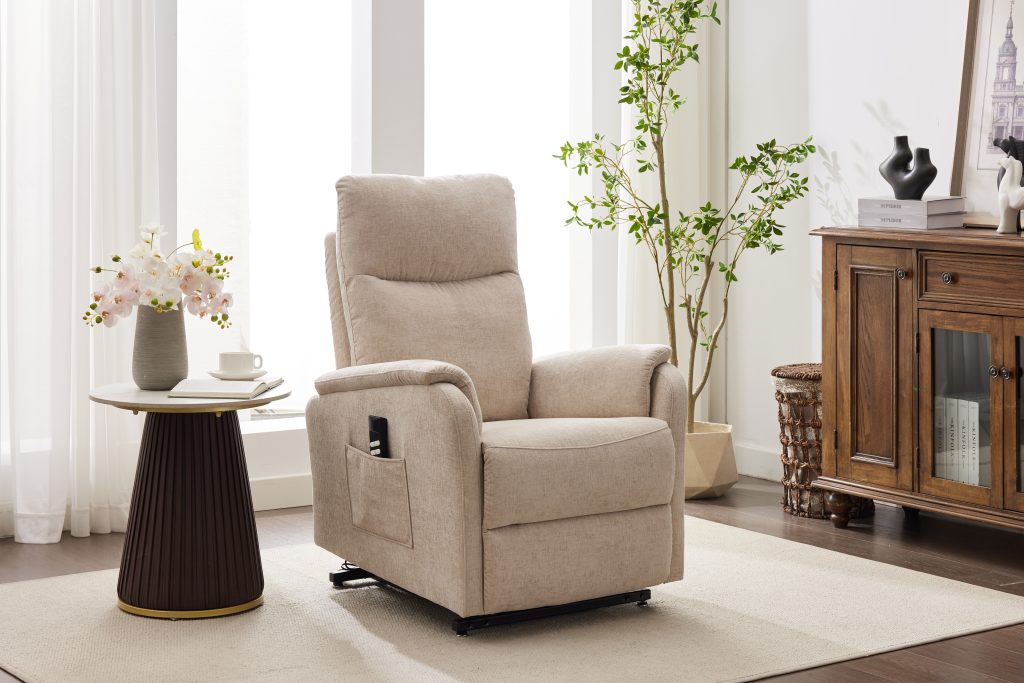 Experience effortless comfort with the Portland Dual Motor Riser Recliner. Designed for smooth, independent adjustment of the backrest and footrest, it provides personalized support at the touch of a button. Upholstered in soft, inviting fabric and available in two versatile shades, Cloud or Barley, the Portland is a perfect fit for any home. Dual Motor Riser Recliner: Allows for independent adjustment of the backrest and footrest for personalized comfort.