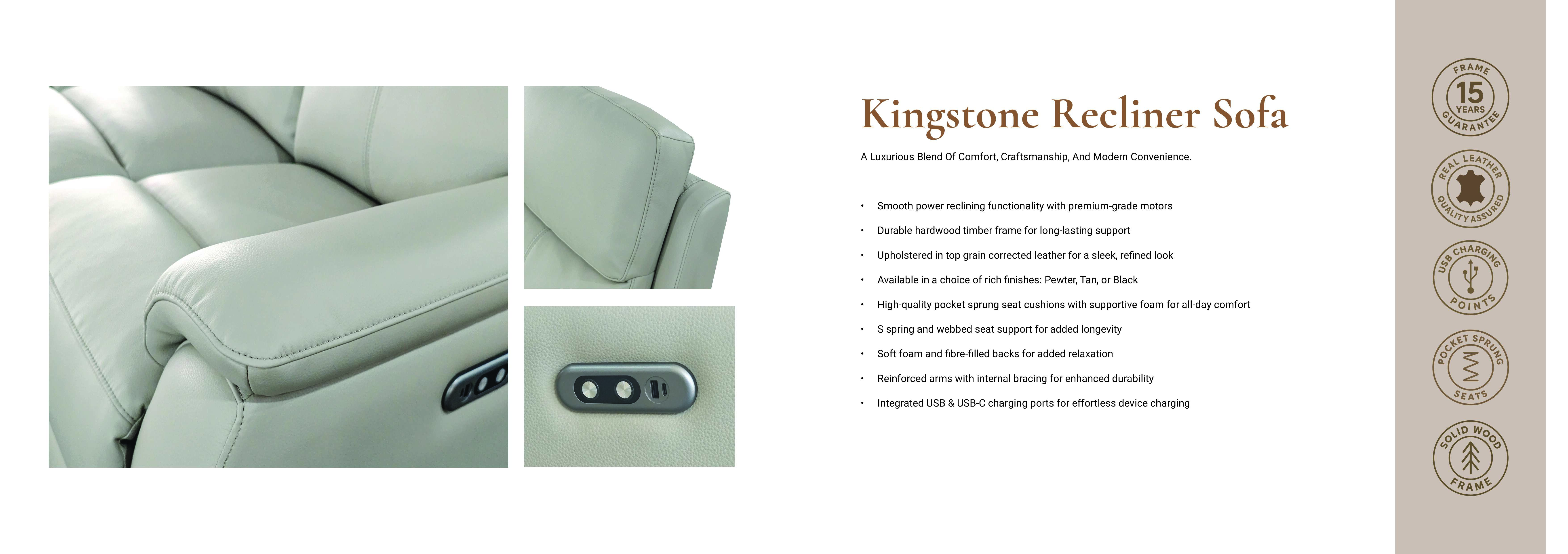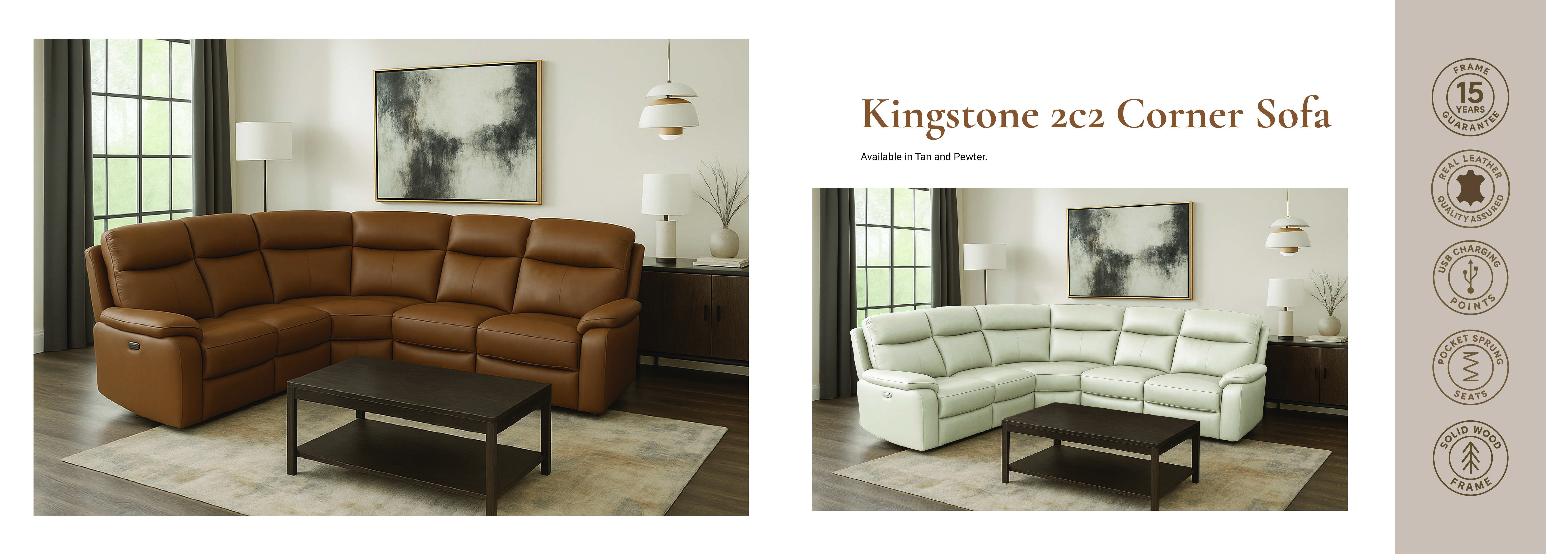 The new leather / leather match electric recliner sofas and chair now in store. Available as 3 seater electric sofa, 2 seater electric sofa and electric recliner chair in a choice of three colours and super fast free local delivery in 2 to 4 weeks. Also available as a electric corner sofa. Colours available are Tan, Pewter or black.