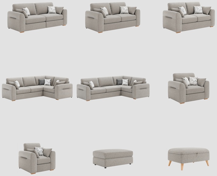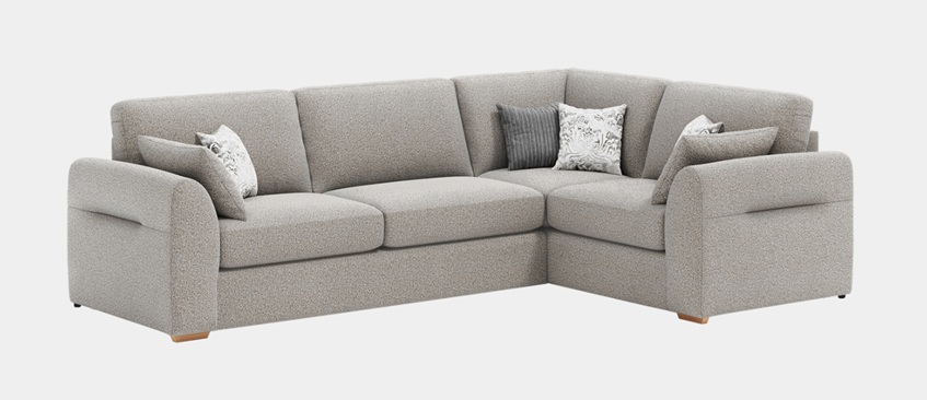 Experience the perfect blend of style and support with the Grantley sofa collection. The elegant, rolled armrests provide a soft, inviting touch, while pleated details on the sides add an extra layer of sophistication. The whole package is finished in a soft weave body fabric with contrasting patterned accent cushions. Designed to stand the test of time, this entire range makes a bold statement in any room. Choose from a variety of sizes, from a spacious corner sofa to a cosy loveseat, and finish your piece with either oak or mahogany effect feet.