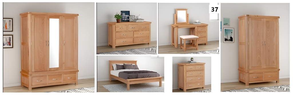 The Chatsworth bedroom collection features high-grade oak with curved corners, classic moulding, and modern stainless steel handles. The Chatsworth bedroom range also comes in painted putty grey colour so that texture of the grain can still be seen, the top is given a light grey wash.